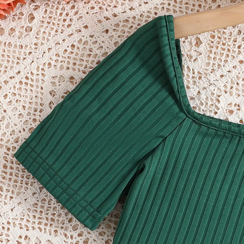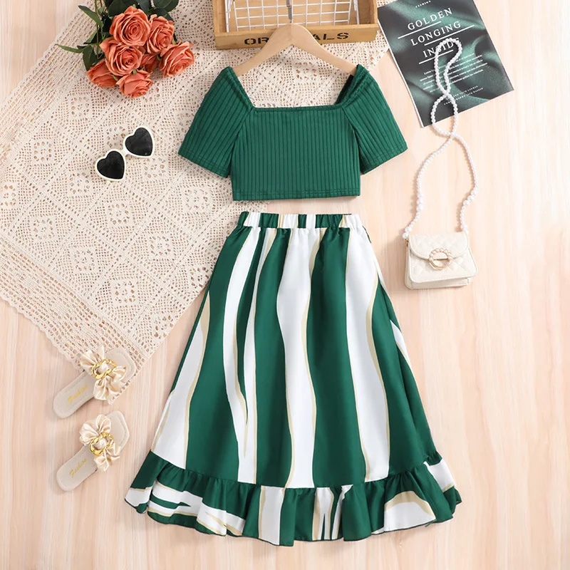 2026 Wholesale Price Girls Clothing Sets Summer Fashion T-shirt Green Skirt Two Piece Princess Teenager Outfits